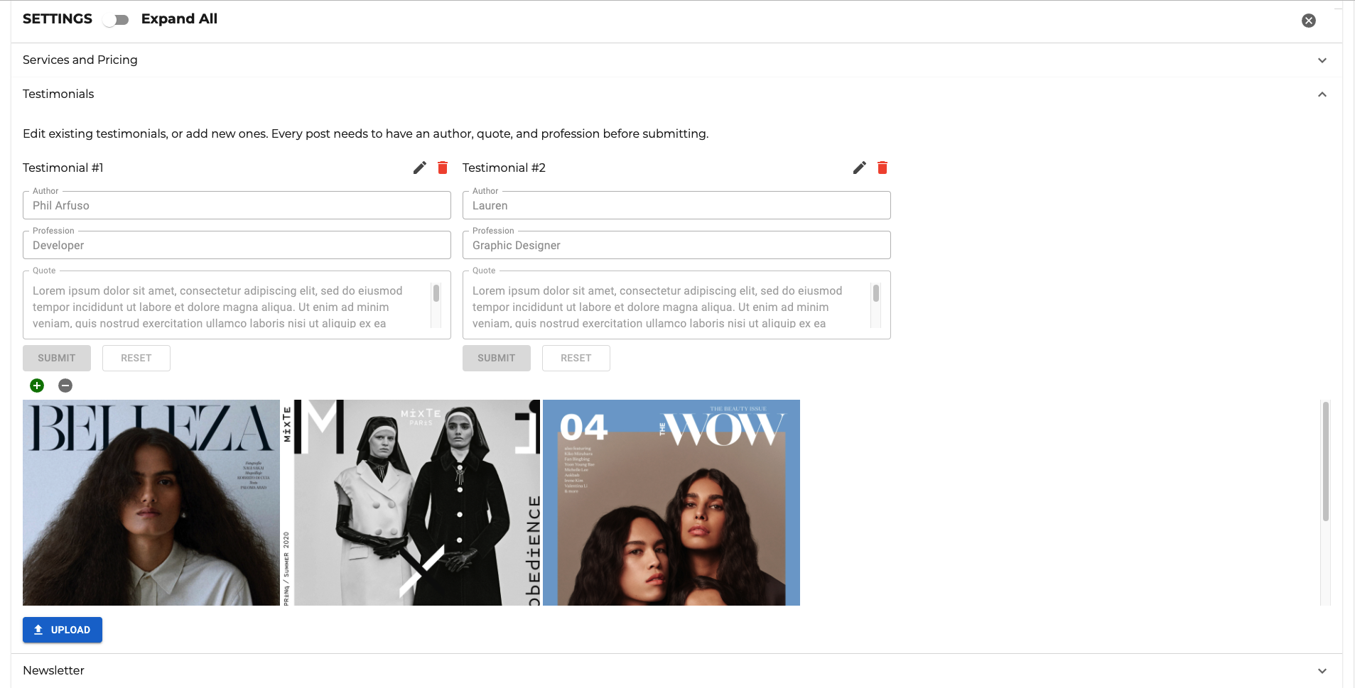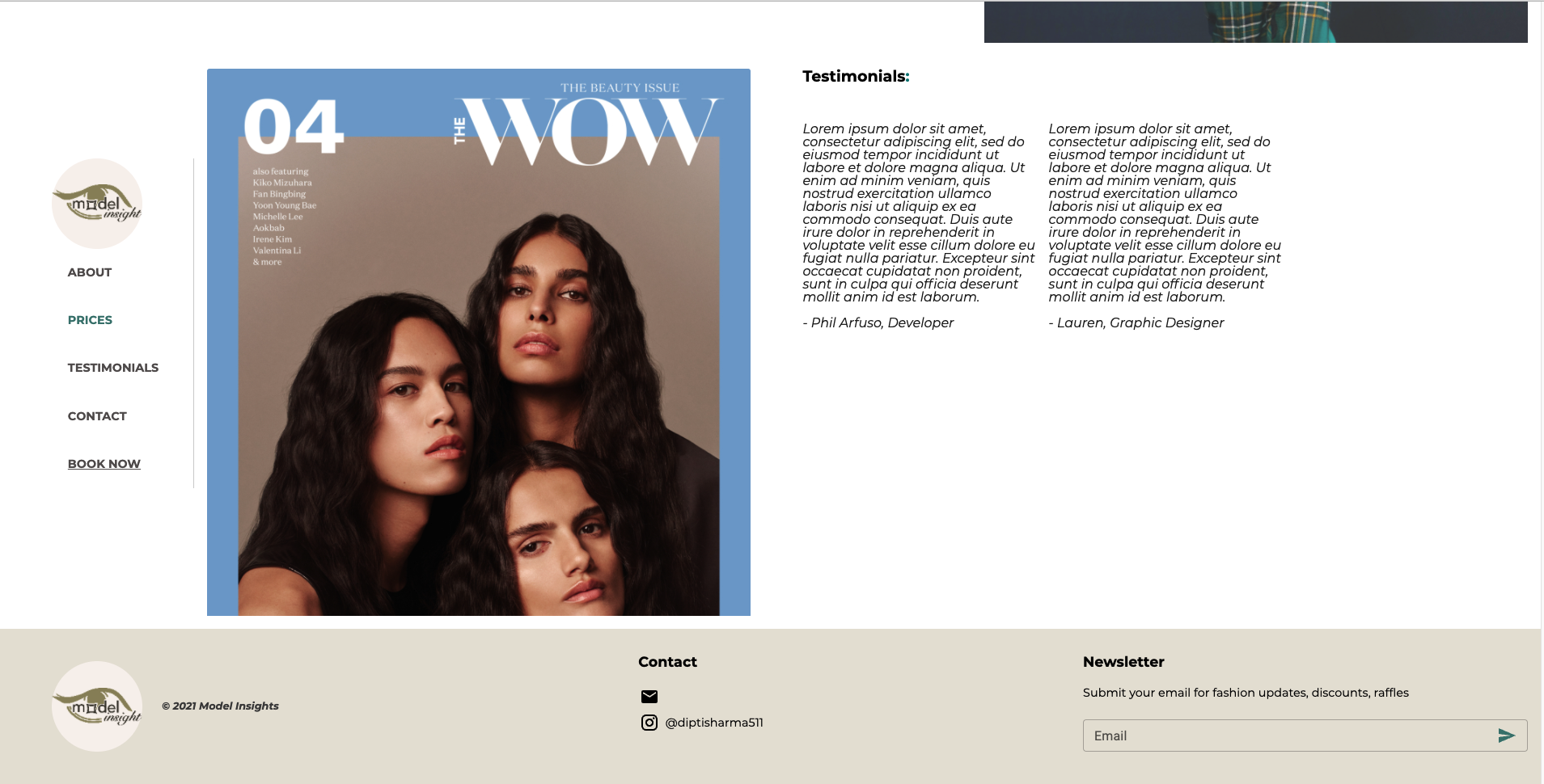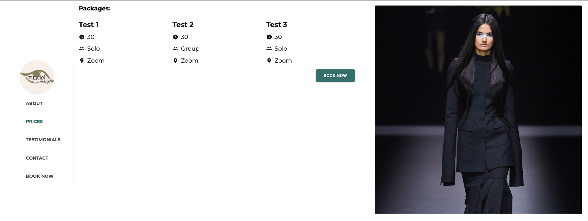 Portfolio website for a fashion model, showcasing her work & offering zoom consultations to potential customers. Custom CMS & Backend designed to cater to this websites needs.